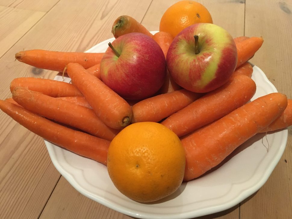 Et af de forskningsresultater jeg faldt over, var at 2 store gulerødder dagligt kan sænke kolesteroltallet med 10 -20%. Gulerødder bekæmper det skadelige kolesterol og fremmer det gavnlige, pga. kostfibre bl.a. pektin, som æbler også indeholder en god mængde af. Betacaroten i gulerødder hæver mængden af det gavnlige HDL betydeligt.